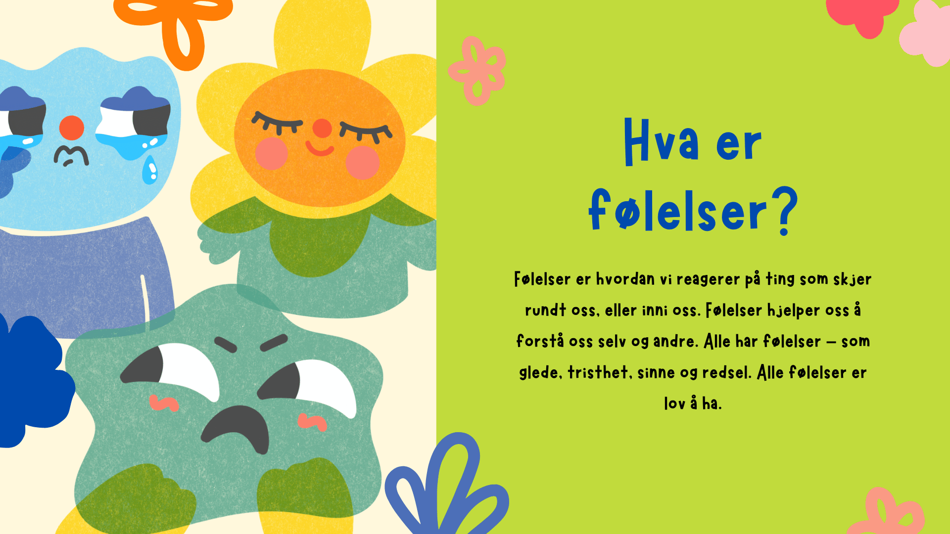 Hvorfor bruke boken? Mange barn, og særlig barn som tenker eller sanser litt annerledes, kan ha ekstra nytte av tydelig og strukturert støtte når det gjelder følelser. Boken forklarer følelser med enkle ord og varme, visuelle bilder som barn lett kan forstå og kjenne seg igjen i. Gjennom konkrete eksempler lærer barnet at alle følelser er lov og viktige, og at det finnes gode måter å uttrykke og håndtere dem på.