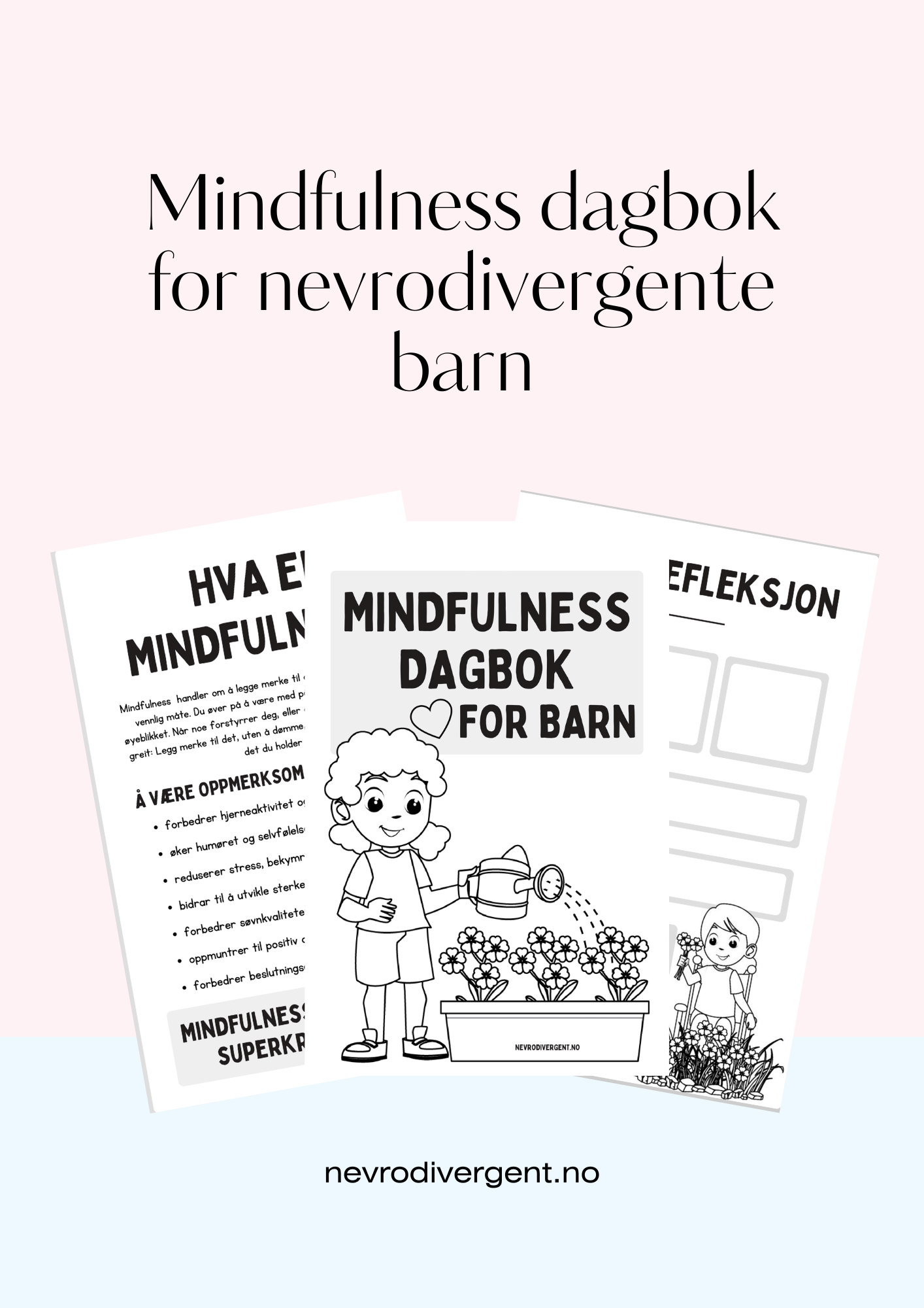 Dette arbeidsheftet er laget for å hjelpe barn 5-10 år å øve på oppmerksomt nærvær (mindfulness) – å legge merke til det som skjer akkurat nå, på en vennlig og ikke-dømmende måte. For nevrodivergente barn, som barn med ADHD og autisme, kan slike øvelser bidra til å styrke ferdigheter som følelsesregulering, oppmerksomhet og stressmestring, men effekten varierer og tilpasning er viktig.